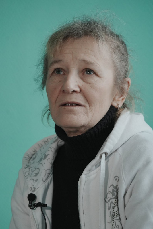 "Немає людей, все зруйноване. А тоді гавкає собака, і бачу чоловік за парканом. Я до нього підійшла, кажу: Дайте мені хоча б ковток води й посидіти відпочити хвилин 10. Він мене завів погодував. Спасибі йому. Звати його Анатолій Юрійович. 1 листопада він мене прихистив, і по суботу я жила в нього. У нього пічечка була в сарайчику, ми там їсти готували. І в суботу вранці побачили, як по вулиці йшло вісім людей — то була група людей, яка йшла на евакуацію", — згадує Літвінова.