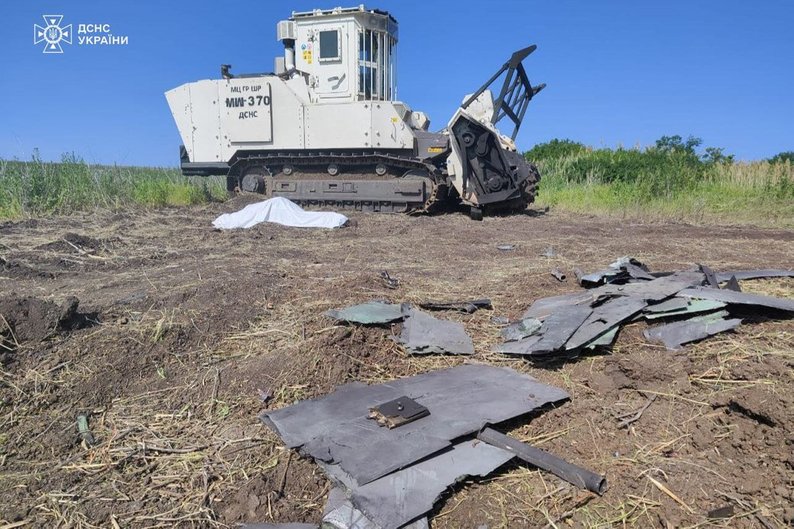 Російський безпілотник вдарив по саперах, які розміновували Харківську область, 11 червня 2025 року. ДСНС України
