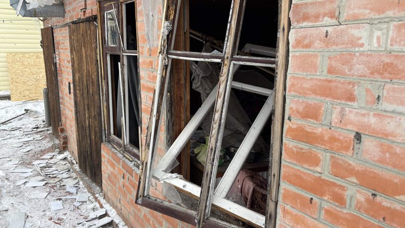 Наслідки влучання російського безпілотника в Чугуєві, 21 січня 2026 року. Фото надала Галина МінаєваВчора там найбільш постраждала жінка. Вона попросила відвезти її до своїх родичів по місту. Ми її відвезли, вона там заночувала. Наразі вже допомагають комунальники їй зовні та всередині ліквідувати наслідки. Цій жінці в город прилетів "Шахед".