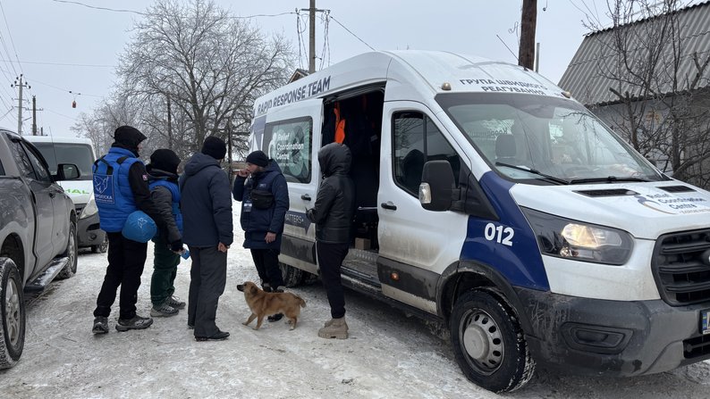 Група швидкого реагування на місці влучання дрону в Чугуєві, 21 січня 2026 року. Суспільне Харків/Олена Старченко