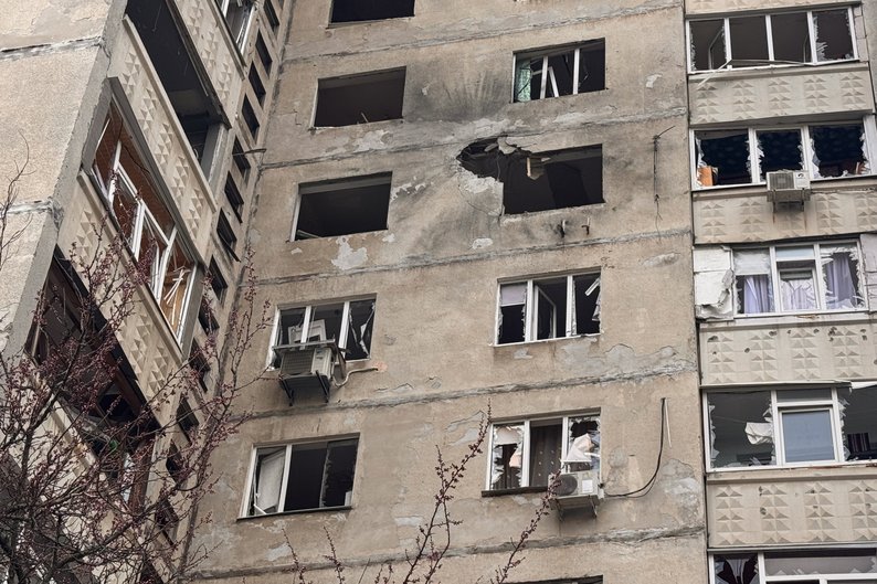 Російський безпілотник “Молнія” влучив у 16-поверхівку в Київському районі Харкова, 2 квітня 2025 року. Суспільне Харків/Валерія Ємець