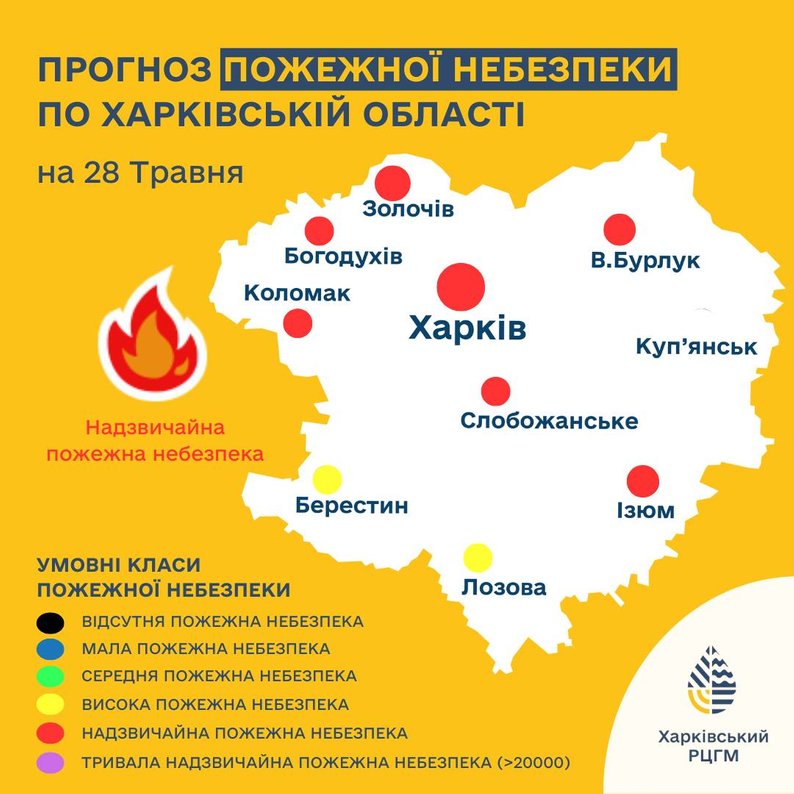Попередження про пожежну небезпеку на Харківщині на 28 травня 2025 року. Харківський регіональний центр з гідрометеорології