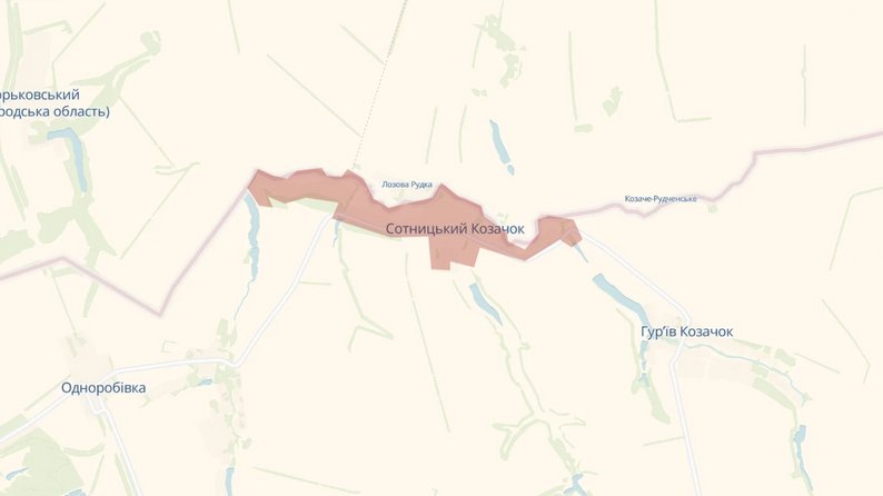 На мапі DeepState Сотницький Козачок позначений як окупований населений пункт на 22 грудня 2025 року. DeepState