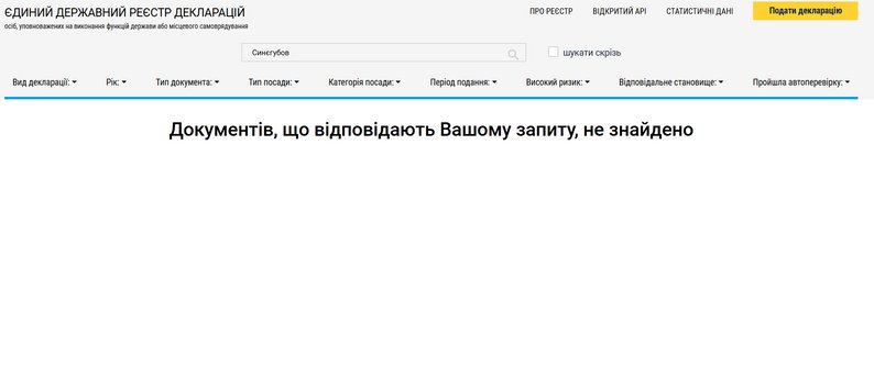 На сайті ЄДРД немає декларації очільника ОВА. Скриншот: public.nazk.gov.ua