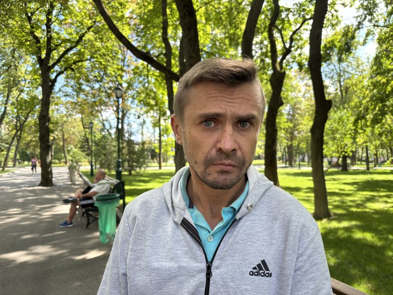Житель Харкова Олександр. Суспільне Харків/Давид Надворний"Паралельно, чесно. Я о восьмій вечора вже вдома, так що особисто мені це не треба. Хай хоч о дев’ятій буде. В літній час, так, це треба. А зараз 8-9 — вже темніє, навіщо до 12? Може, для молоді це гарне питання, але… Взагалі, якщо продовжили, то гарно, хай буде", — говорить Олександр.