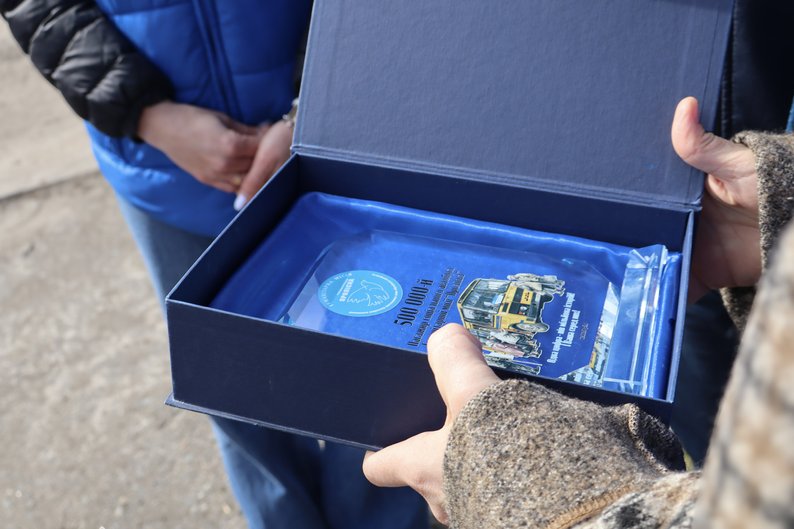 Відзнака, яку представники гуманітарної місії “Проліска” вручили півмільйонній пасажирці у Золочеві, 23 березня 2026 року. Гуманітарна місія “Проліска”