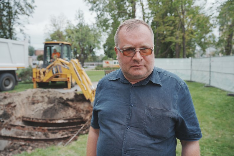 Підземні ходи на території скверу “Стрілка” в Харкові, 1 серпня 2025 року. Харківська міська радаБаня ця була дуже популярною: вона працювала навіть при німцях, у період Другої світової війни, в період окупації. Але наприкінці 1950–1960-х, як і написано було в тій статті, лазня трохи застаріла — це була будівля 1840-х років. Це була дуже велика будівля, чотири поверхи.