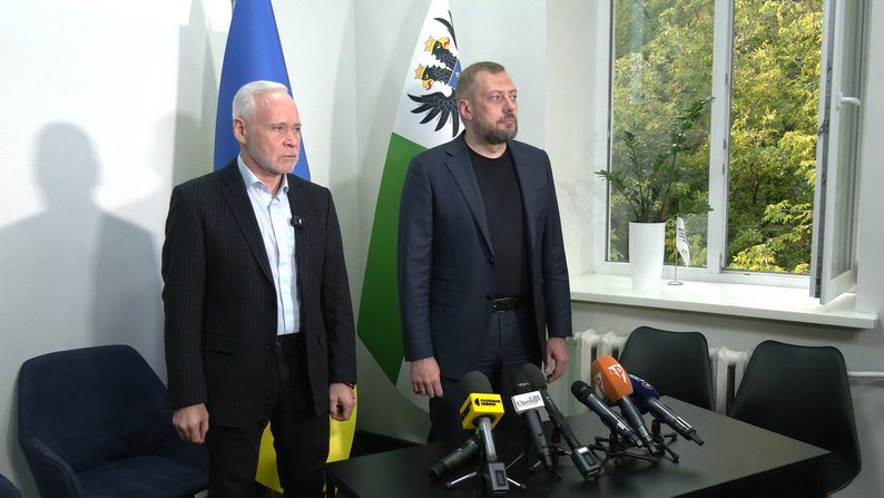 Міський голова Харкова Ігор Терехов та начальник Чернігівської ОВА В’ячеслав Чаус під час підписання меморандуму 9 жовтня 2025 року у Чернігові. Суспільне Чернігів