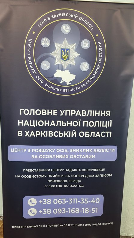 Запис на прийом у Спеціалізований центр з розшуку осіб, зниклих безвісти за особливих обставин, у Харкові . Поліція ХарківщиниКоли, наприклад, родина проживає у нас в Лозівському районі, а слідчий з іншої області повідомляє їм про те, що доставлене до моргу тіло, ймовірно, їх рідного, тому їм потрібно здати зразки й таке інше. Вони можуть це зробити у нас, у Харкові. Вони прийшли до нас, ми передивилися певний період, вже знали номер тіла, відкрили, вони подивилися відомості саме про це тіло, переконалися, що так, це їх рідний. Не треба витрачати час, щоб їхати до моргу, стикатися взагалі з цією процедурою впізнання.