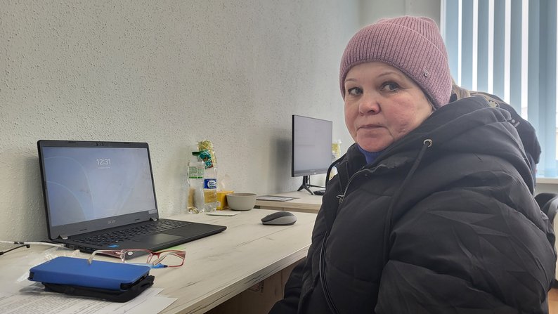 Наталія переглядає електронний каталог, приїхавши у Спеціалізований центр з розшуку осіб, зниклих безвісти за особливих обставин, січень 2025 року. Суспільне Харків/Марія Солодовнік