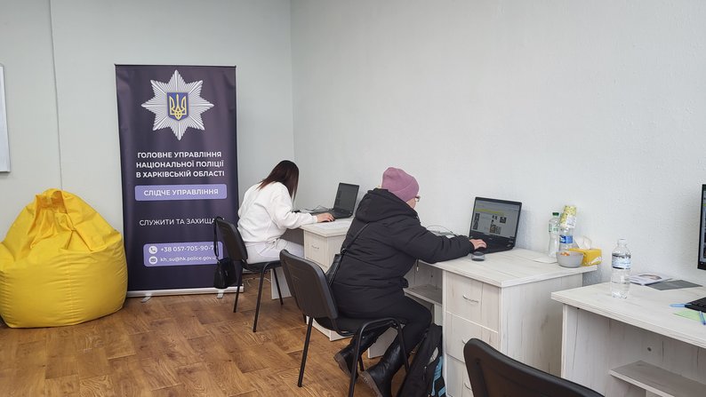 Працівники Спеціалізованого центру з розшуку осіб, зниклих безвісти за особливих обставин, поліції Харківщини, січень 2026 року. Суспільне Харків/Марія Солодовнік