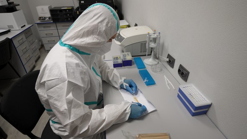 Спеціаліст у криміналістичній лабораторії відділу криміналістичного забезпечення слідчого управління ГУНП в Чернігівській області працює з біологічним матеріалом для подальшого виділення з нього ДНК. Суспільне Чернігів