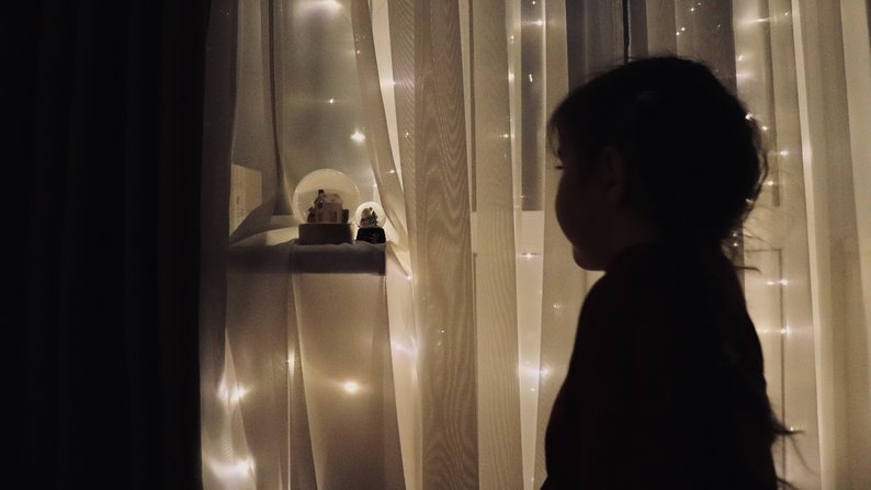 Дитина біля вікна з гірляндами. Суспільне Івано-Франківськ/Діана Яців