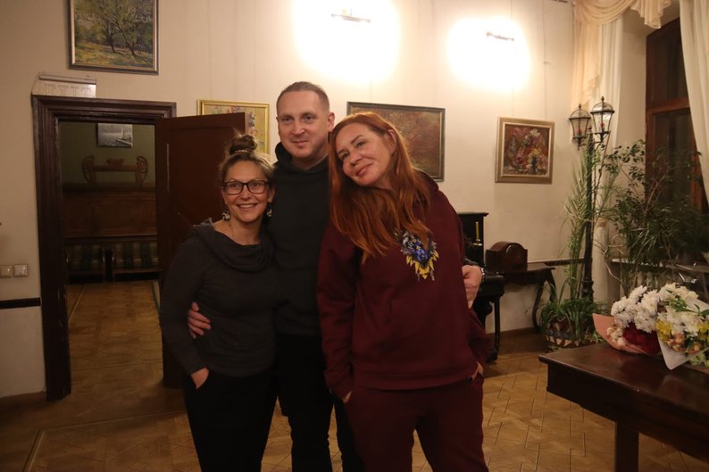 Режисер Андрій Лебедь з харків’янкою та авторкою книги “Як ти там?” Анною Гін (справа). “Театр для людей”/Facebook