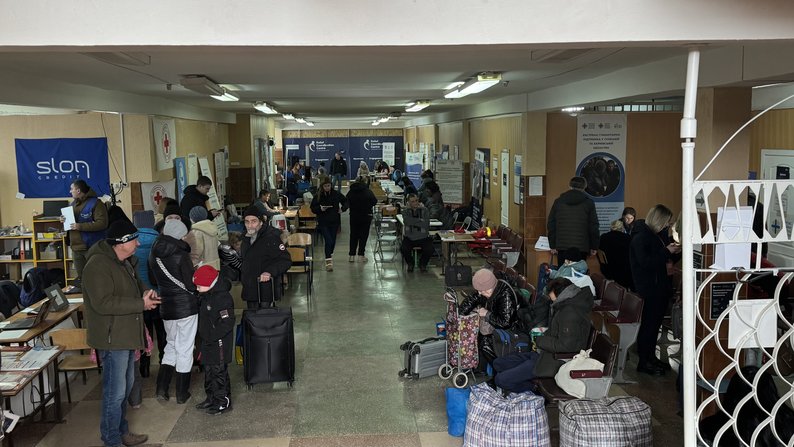 Транзитний центр для евакуйованих у Лозовій, 6 лютого 2026 року. Суспільне Харків/Єлизавета Пшенична