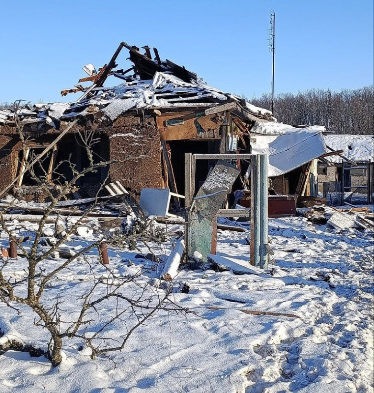 За три доби ударів РФ, з 23 по 25 січня, у Пролісненській громаді Чугуївського району знищені два будинки та пошкоджені ще 11.