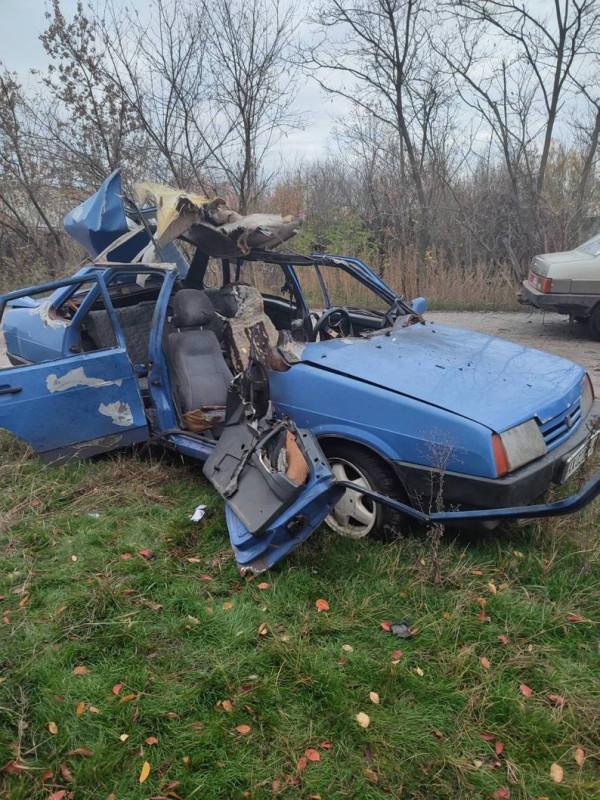 Наслідки атаки дрона на авто у Підлимані, 2 листопада 2025 року. Борівська селищна рада