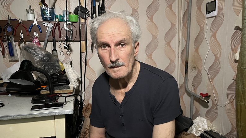 Житель Північної Салтівки В’ячеслав Гребенюк у своїй квартирі, Харків, листопад 2025 року. Суспільне Харків/Вікторія Якименко