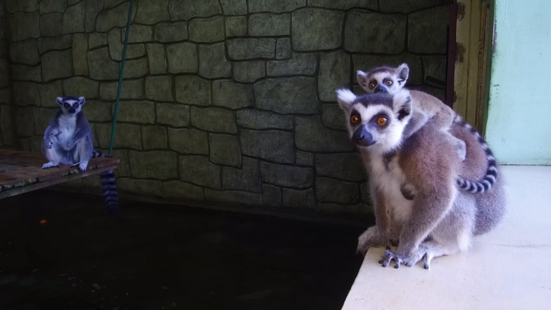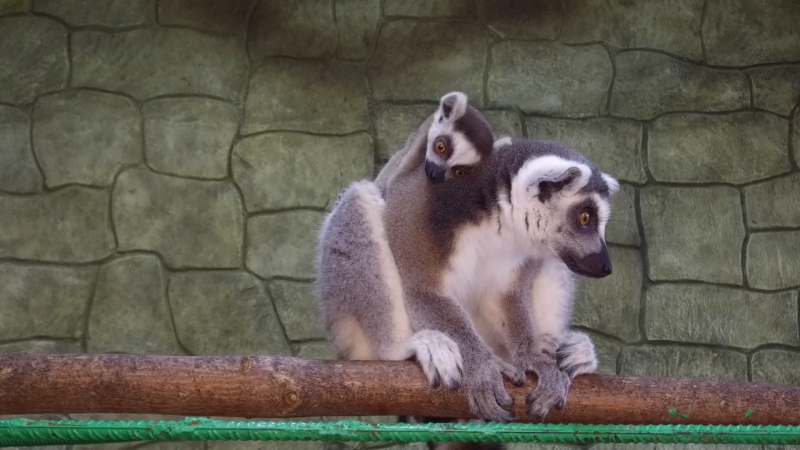 Дитинча лемура разом з мамою Скриншот з відео “Фельдман екопарк”
