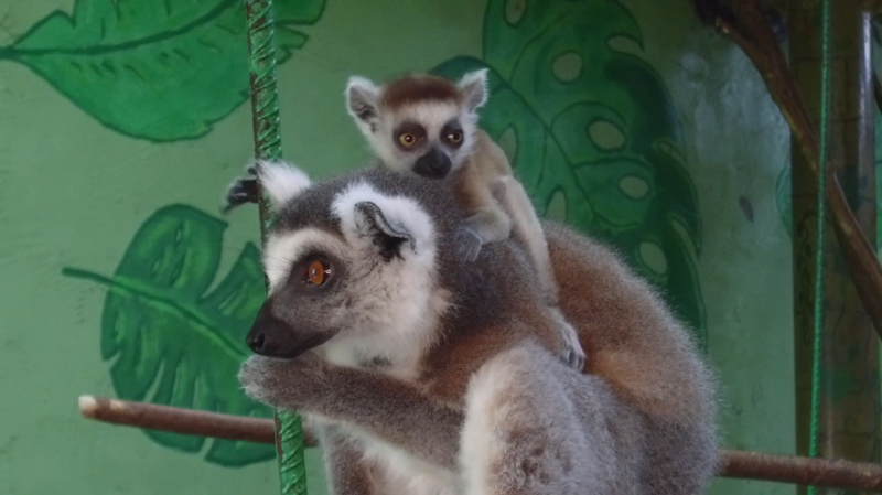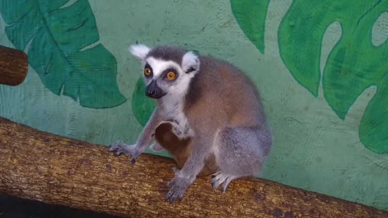 Маленький лемур з мамою. Скриншот з відео “Фельдман екопарку”