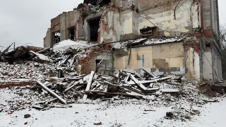 Зруйнований через російські удари ліцей в Есхарі, 16 грудня 2025 року. Суспільне Харків/Лариса Говина
