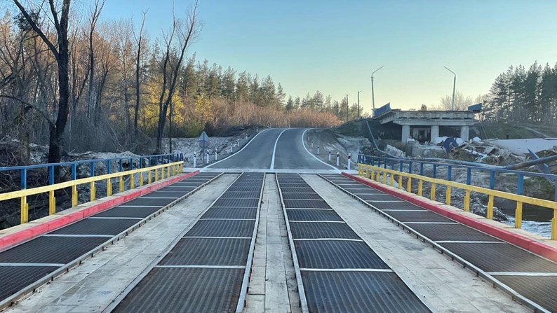 Тимчасова переправа через річку Сіверський Донець в Ізюмі, листопад 2022 року. Служба відновлення та розвитку інфраструктури у Харківській області/Facebook