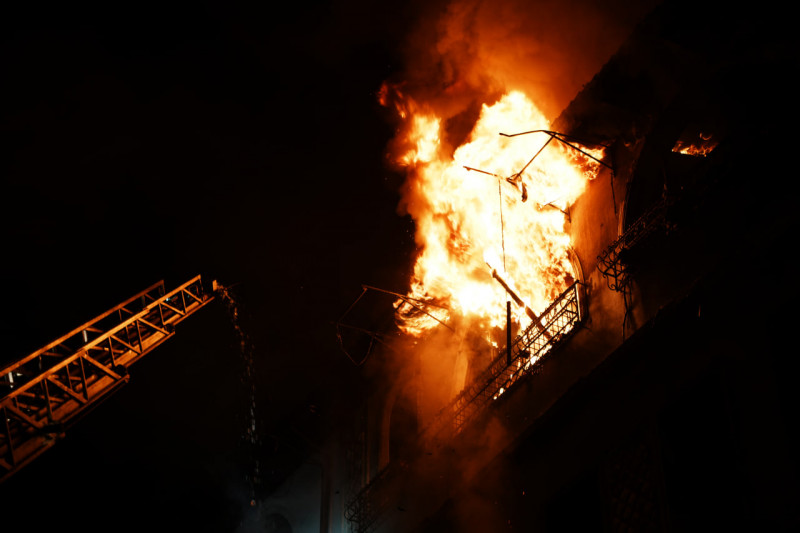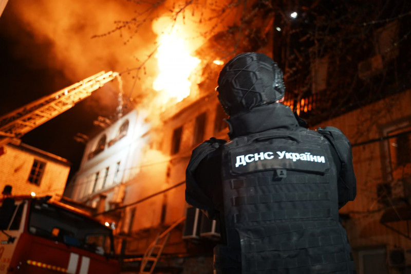 Перший вибух пролунав близько 01:47 — РФ влучила "Шахедом" по Київському району Харкова, на місці виникла пожежа, повідомив міський голова Ігор Терехов.