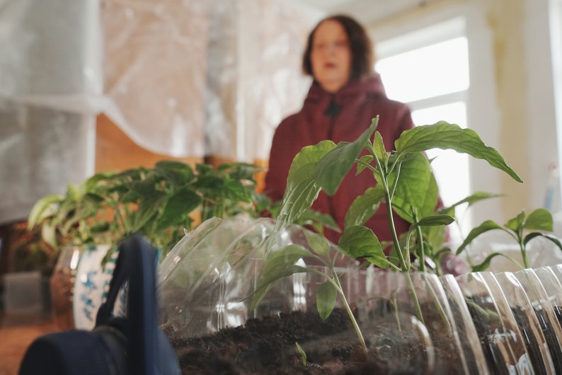 Наталія Припроста вирощує розсаду у ящиках з-під снарядів. Суспільне Харків/Вікторія Якименко