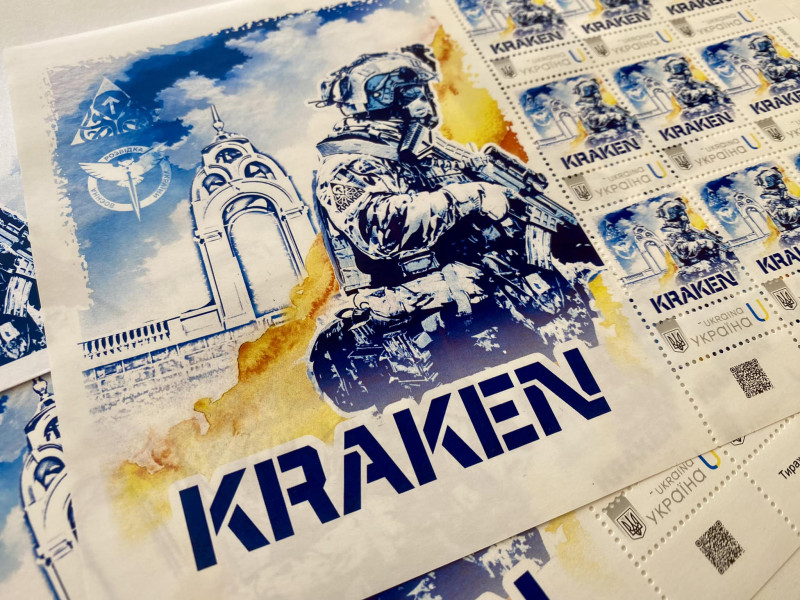 Зображення бійця спецпідрозділу ГУР “Кракен” прикрасило поштову марку. Natalia Mukhina/Facebook
