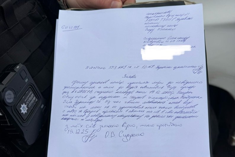 Заяву на водія за напад на ветерана під час хвилини мовчання в Харкові, 19 грудня 2025 року. Олександр Сидоренко/Facebook