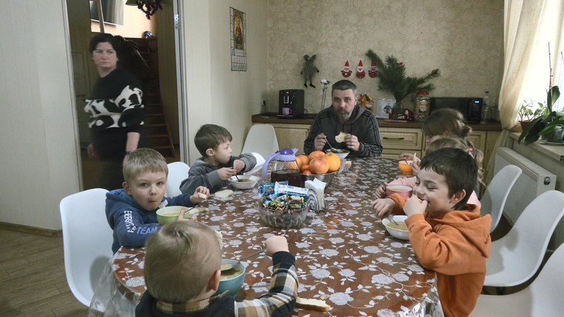 Станіслав Кульшан обідає за столом разом із дітьми. Суспільне Харків