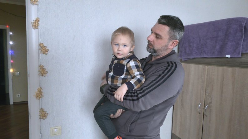 Станіслав Кульшан тримає на руках прийомного сина. Суспільне Харків