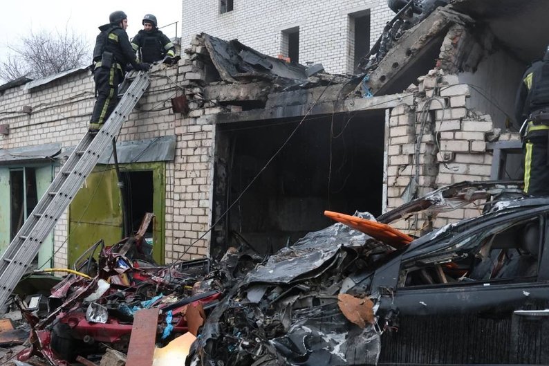 Техніка, яка працює на місці вибуху в гаражному кооперативі в Шевченківському районі Харкова, 3 грудня 2025 року. Харківська міська рада