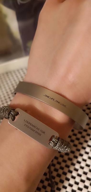 Браслет з гравіюванням “One life, one love” на руці Анни Кучерявенко. Фото надала Анна Кучерявенко