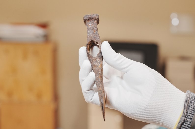 Середньовічна залізна сокира, яку військові знайшли під час Слобожанського контрнаступу. Суспільне Харків/Вікторія Якименко