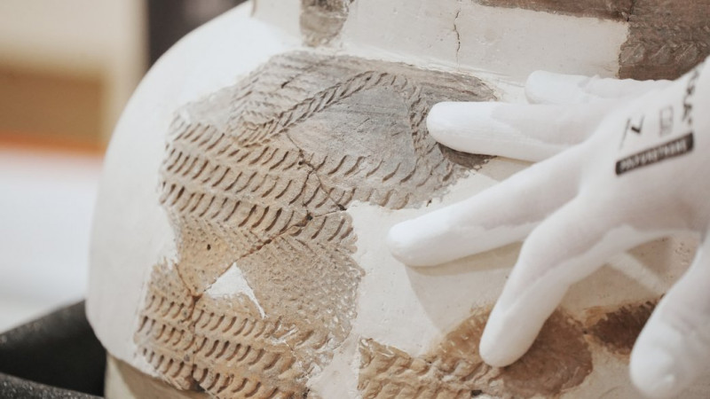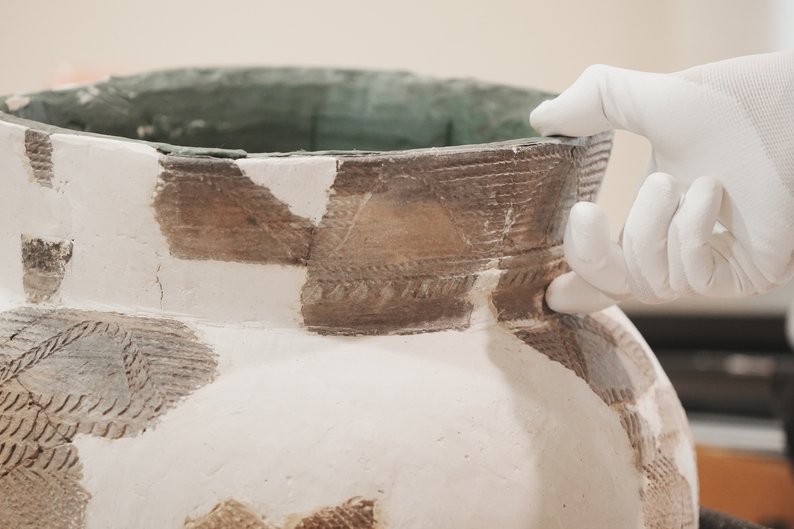 Цю посудину реставрували не музейники. Тобто, це та людина, яка знайшла — військовий — мала якийсь досвід реставраційних робіт, й намагалася сама його реставрувати.