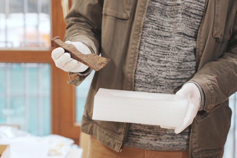 "Тут цікаві обставини цієї знахідки. Вона була знайдена не в культурному шарі, не в окопі, тобто, вона походить не з ґрунту, а просто була десь, за його словами, знайдена на подвір’ї. В неї був встромлений якийсь дерев’яний держак, тобто, хтось намагався її використовувати як сучасну сокиру. Версія така, що під час окупації Вовчанського району хтось, або копали фортифікаційні споруди, або десь в землі знайшли", — каже музейник.