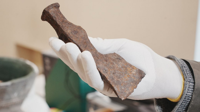 Сокира часів Хазарського каганату, знайдена під час Харківського контрнаступу 2022 року. Суспільне Харків/Вікторія Якименко