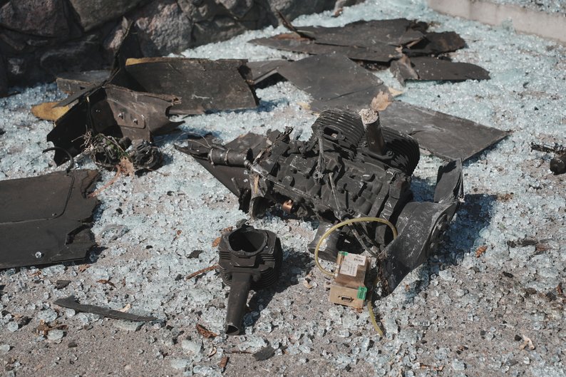 Уламки “Шахеда” на місці влучання, Харків, 22 квітня 2025 року. Суспільне Харків/Вікторія Якименко