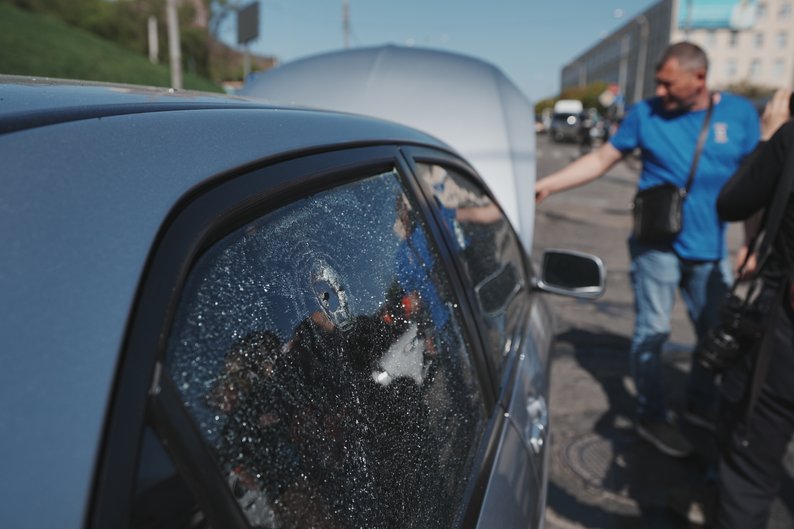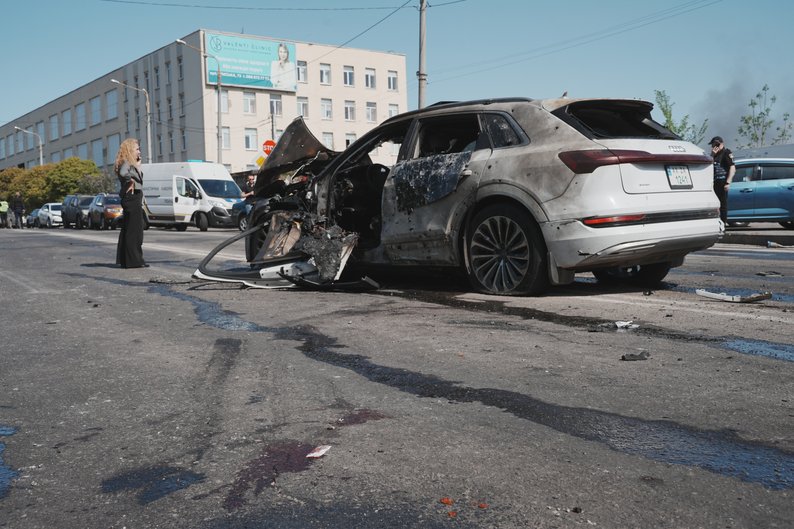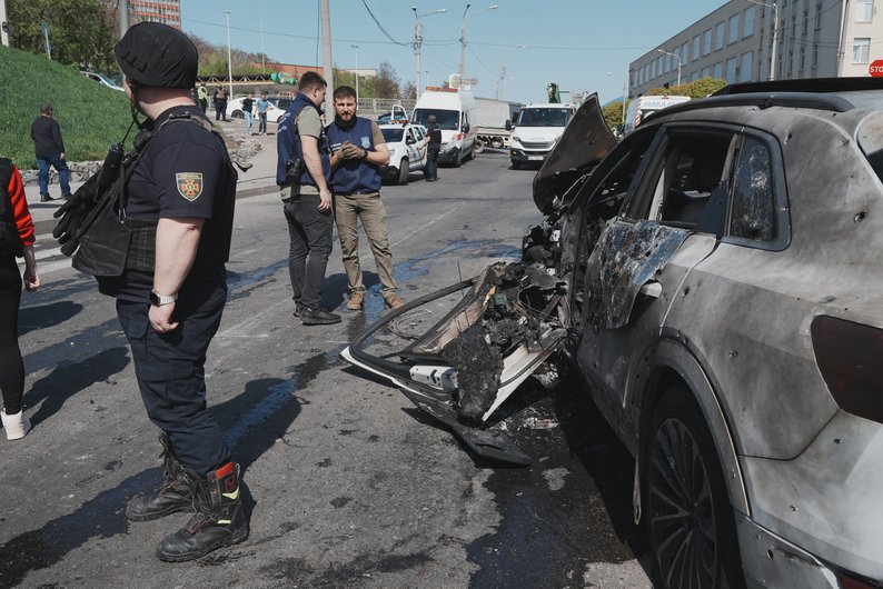 Пошкоджений автомобіль внаслідок атаки дронів на Харків, 22 квітня 2025 року. Суспільне Харків/Вікторія Якименко