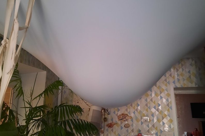Натяжна стеля, наповнена водою, у квартирі Юрія Івченка. Суспільне Харків/Давид Надворний