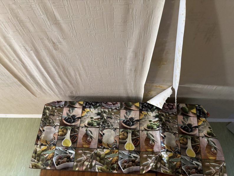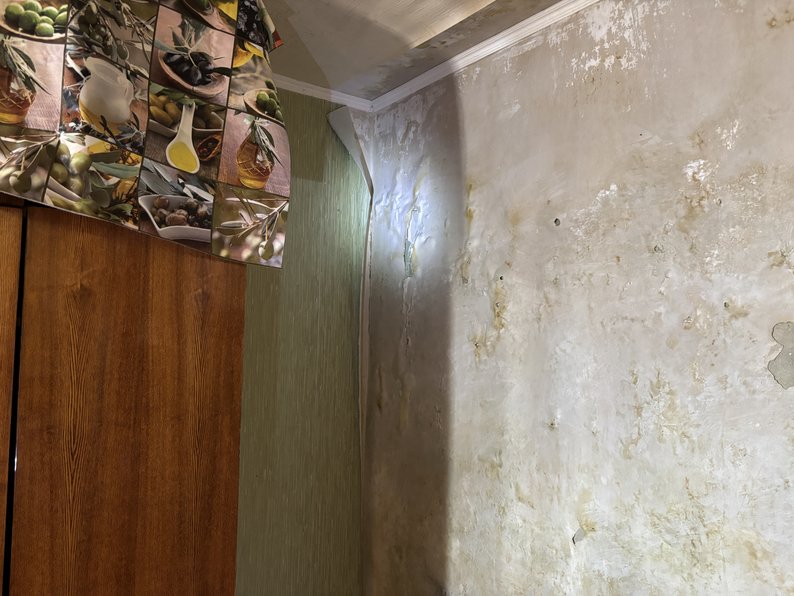 Шпалери на стелі, які відклеїлися через вологу. Суспільне Харків/Давид Надворний