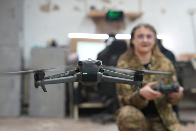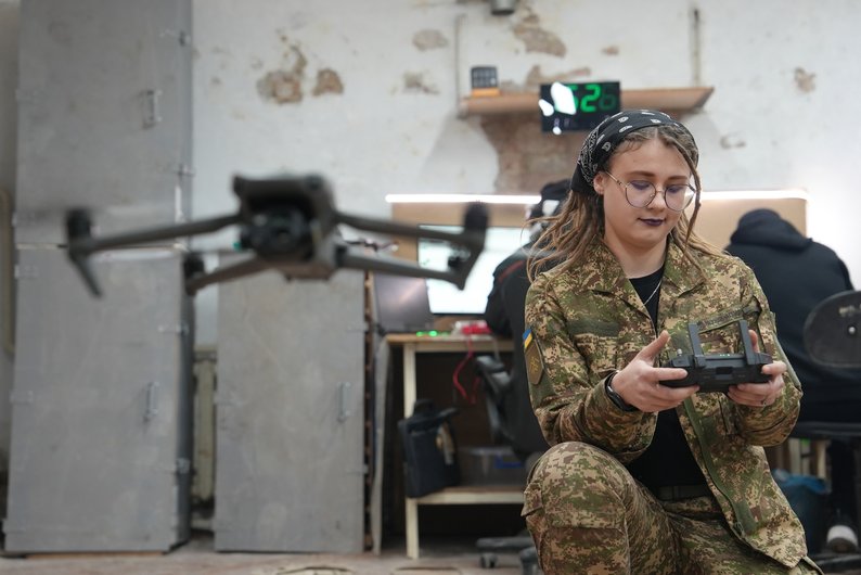 Військовослужбовиця 13 бригади “Хартія” на позивний “Жуйка” керує дроном. Суспільне Харків
