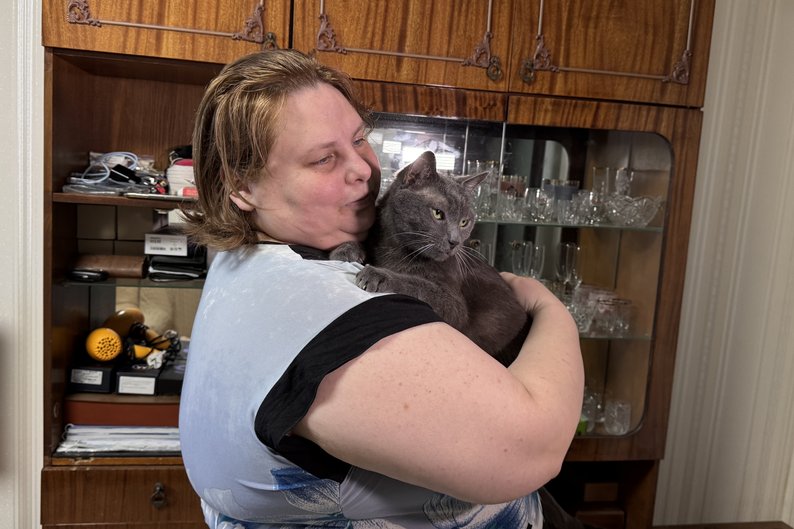 Поліна Сазонова живе у 12-поверхівці, один з під’їздів якої демонтують за рік після влучання КАБу, Харків, 28 серпня 2025 року. Суспільне Харків/Лариса Говина