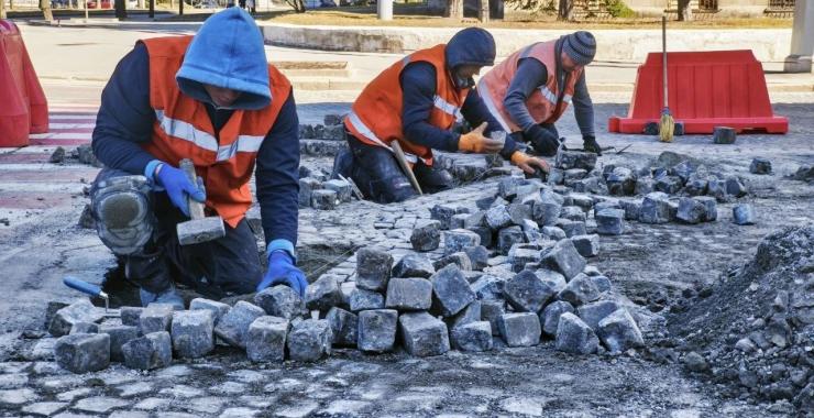 Комунальники перекладають бруківку на площі Свободи з кількох напрямків: від проспекту Науки та неподалік ХНУ ім. Каразіна. Перекладкою займаються співробітники “Шляхрембуд”. Це не капітальний, а поточний ремонт бруківки.
