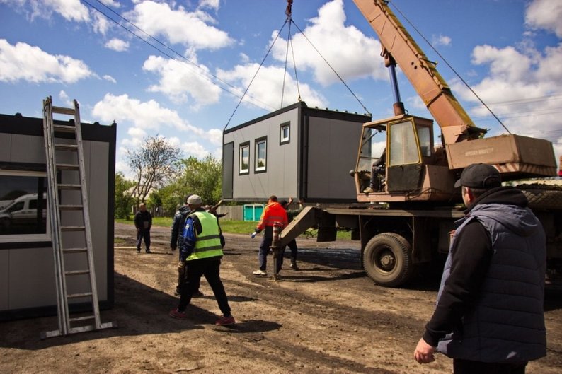 Установка модульного медичного пункту в Шевченківській територіальній громаді, Харківська область, травень 2025 року. Шевченківська територіальна громада