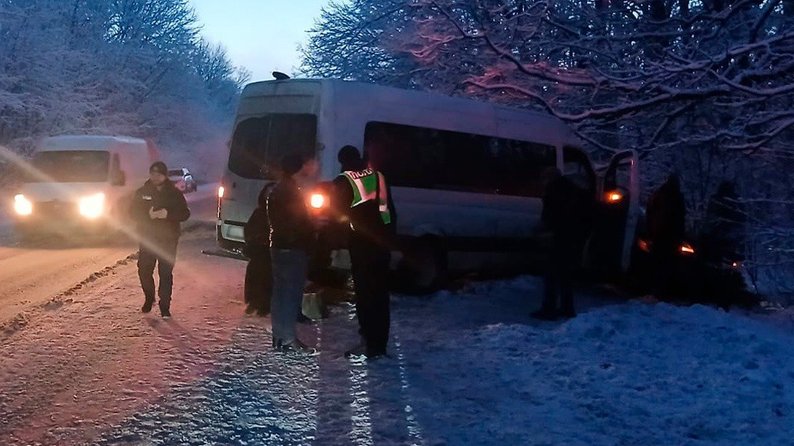 У Харківській області ввечері 5 січня Kia Sorento, що рухався в напрямку Мерефи, не впорався з керуванням і виїхав на зустріч автобуса Mercedes-Benz Sprinter. 18 людей постраждали. Поліція Харківщини