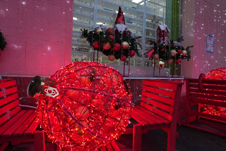 Новорічний декор біля одного із закладів у Харкові, 17 грудня 2025 року. Суспільне Харків/Олександр Манченко