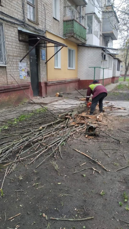Нині фахівці філії "Благоустрій" комунального підприємства "Шляхрембуд" розпилюють та вивозять повалені дерева та гілки, йдеться у повідомленні пресслужби міськради.