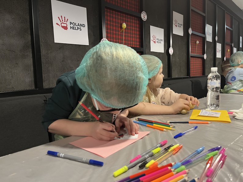 Зокрема, сьогодні тут шестирічна Зоряна, вона розмальовує великодню листівку. Родина Зоряни понад рік тому переїхала до Харкова з деокупованої частини Куп’янського району, каже батько Андрій Луферов.
